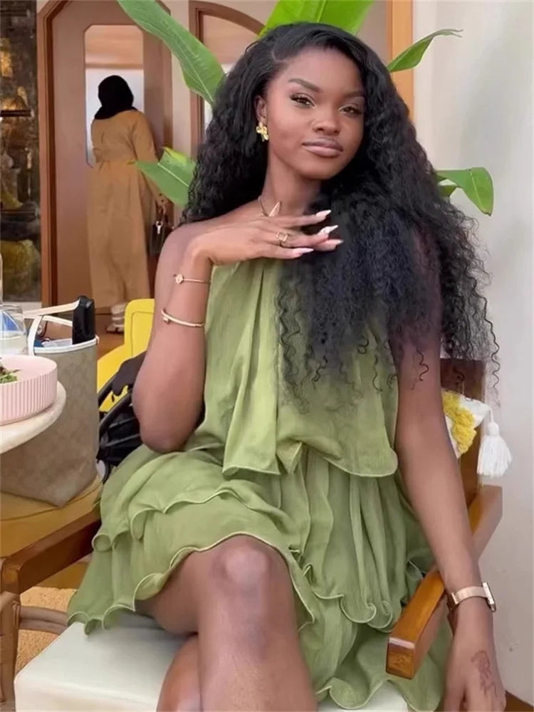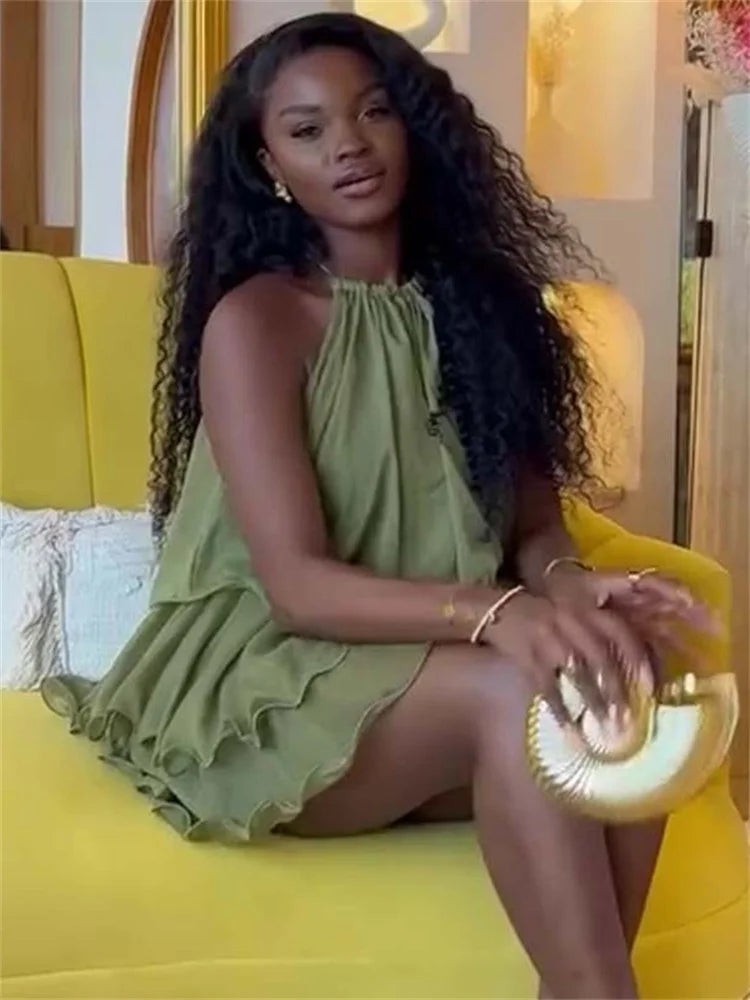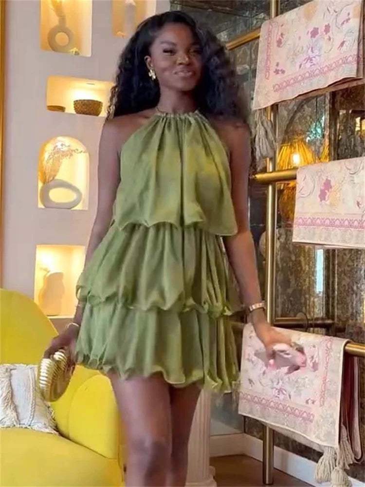 Ruched Tierred Mini Dress Women Summer New Trend Halter Off Shoulder Hot Girl Street Fashion Elegant Skinny Outfits