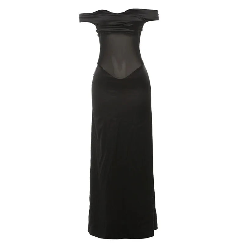 Satin Mesh See-through Green Party Dresses 2025 Woman Elegant Sexy Off Shoulder Maxi Dress