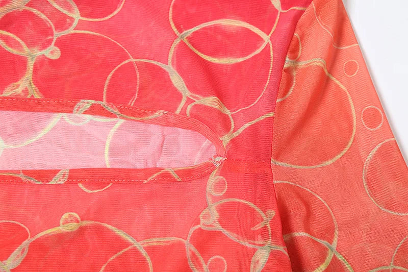 See Through Mesh Print Mermaid Dresses Woman Sexy Beach Party Hollow Long Sleeve Maxi Dress