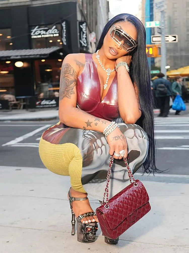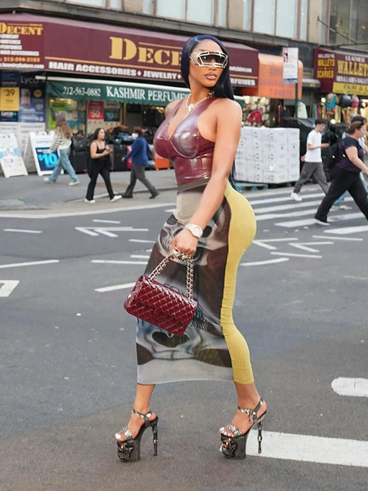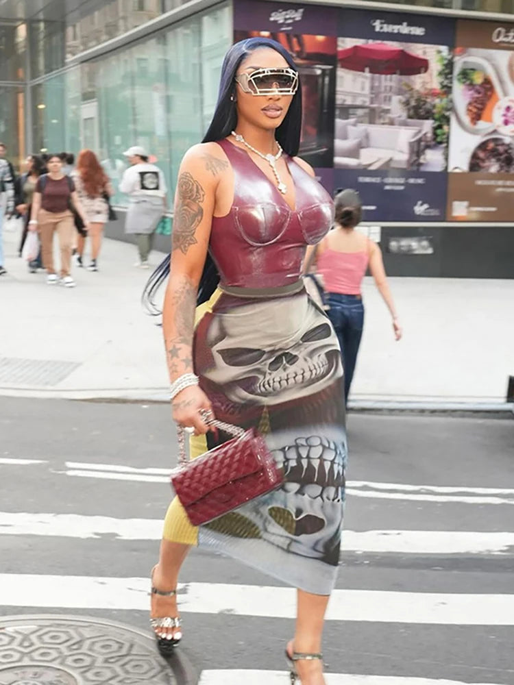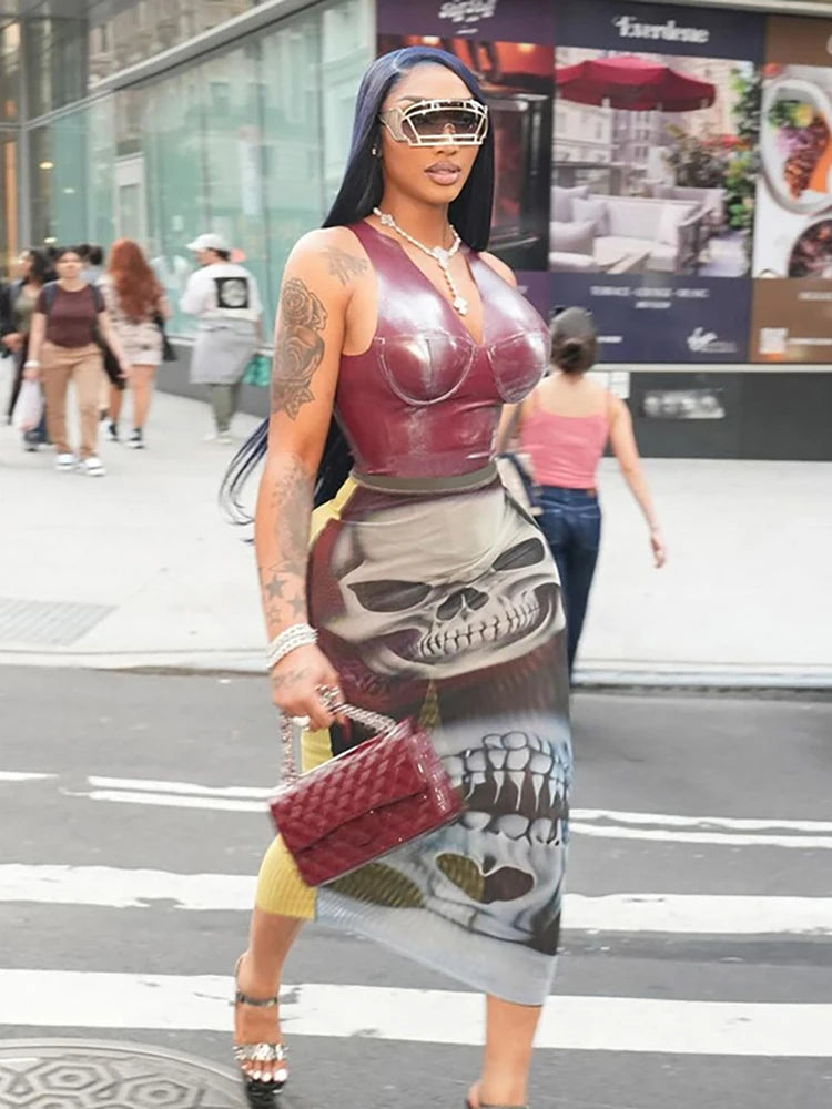 See Through Skirts Women 2025 Summer Trend Skulls Print Sexy Skinny Stretch Wild Basic Clubwear Midnight Long Skirts