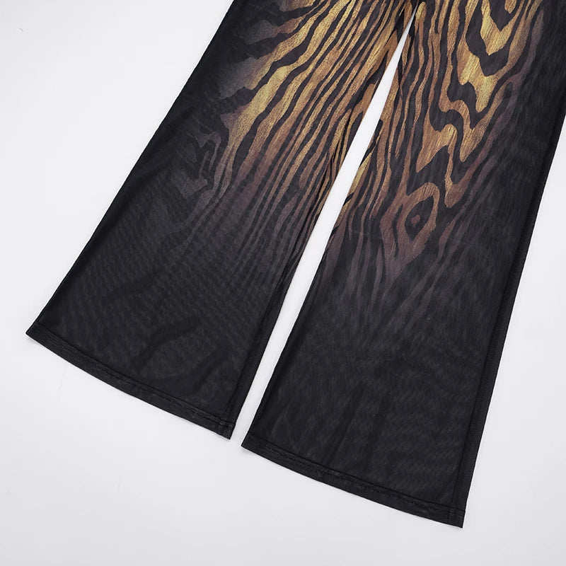 See Through Tiger Print 2-Piece Set Women o-Neck Halter Backless Bandage Vest+Trousers Elasticity Sexy Midnight Suits