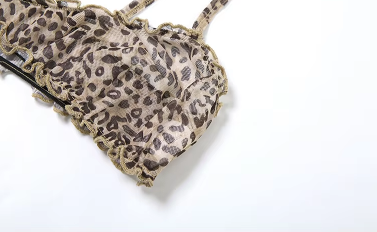 See Through Women 2 Piece Set Sexy Leopard Print Summer Ruffles Camisole+Shorts Vacation Matching Clubwear Outfits