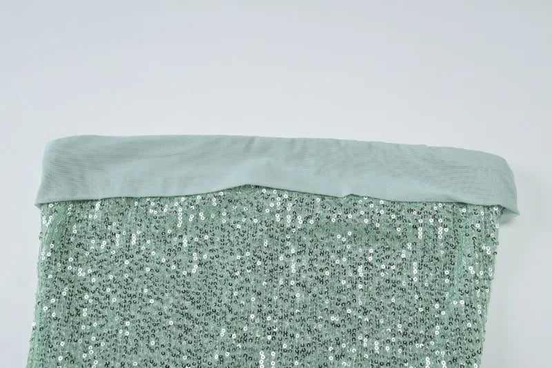 Sequined Strapless Backless Split Maxi Dress with Mesh Scarf Woman Elegant Evening Gown Party Dresses
