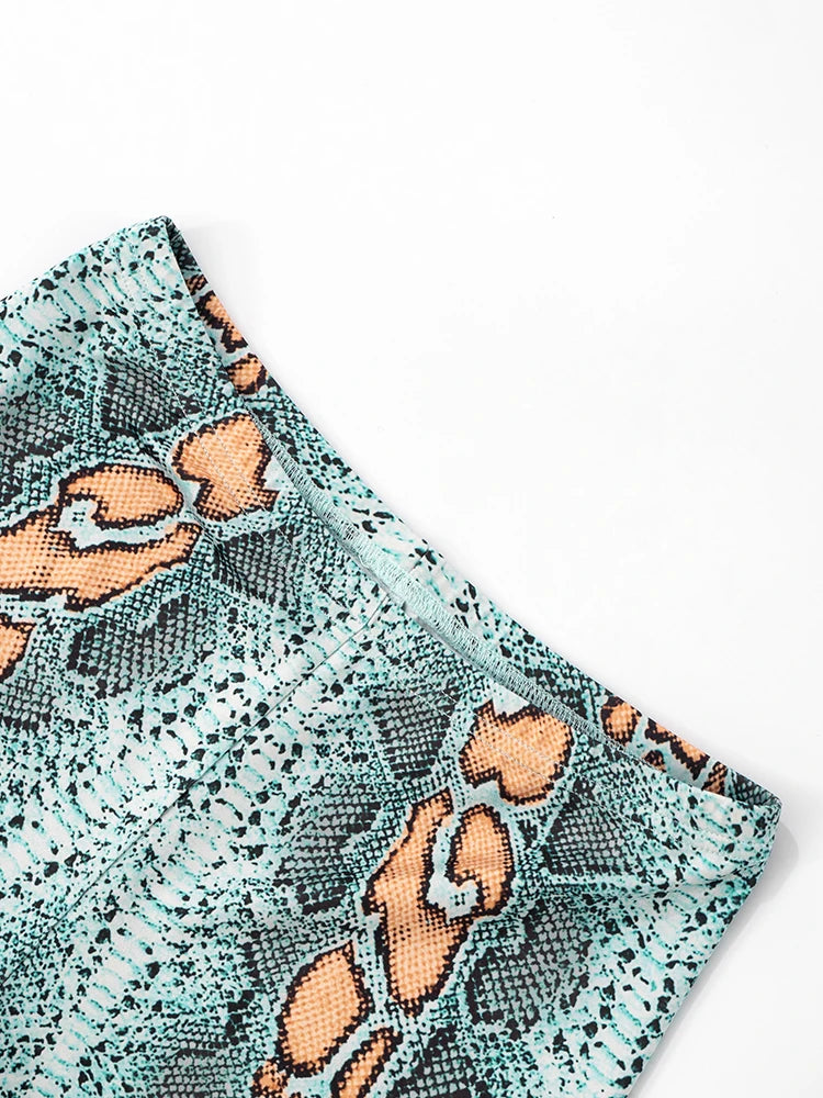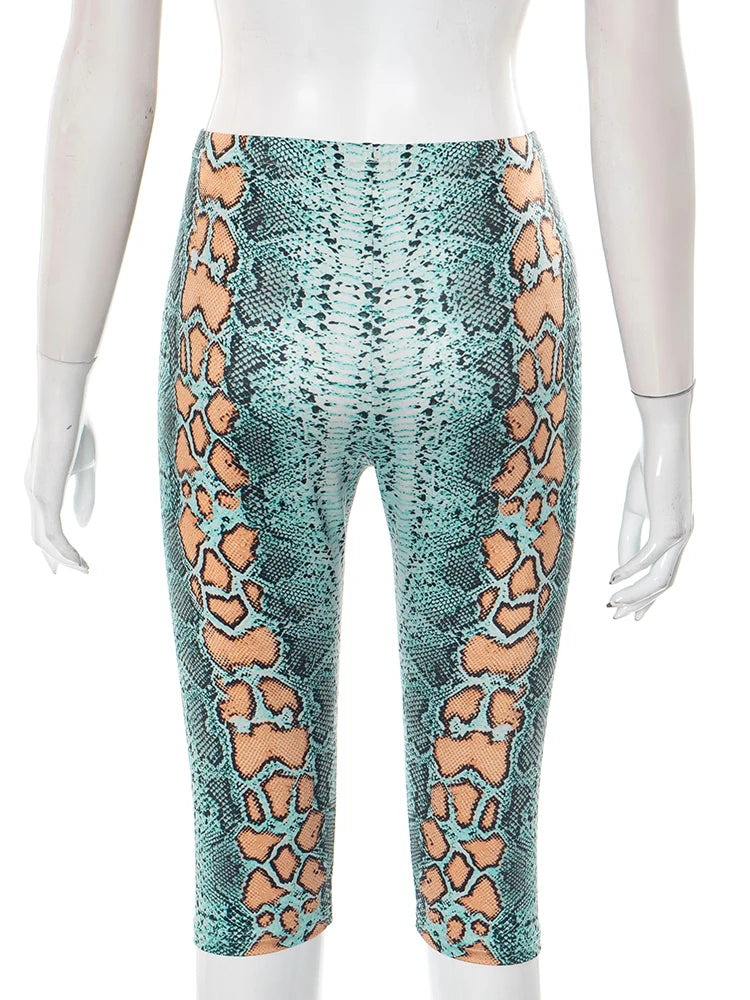 Serpentine Patchwork Shorts Women Summer Trend Elastic Waist Skinny Peach Buttocks Street Fashion Wild Style Bottoms