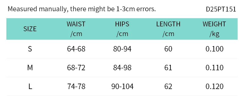 Waist Size: 25.20-26.77" Hip Size: 31.50-37.01" Length(Bottoms): 23.62"