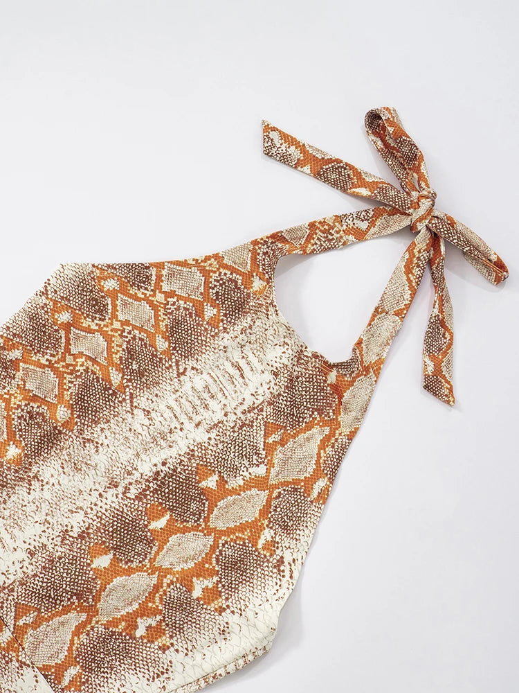 Serpentine Print Jumpsuits Women Bandage Halter Backless Sleeveless Skinny Peach Hip Midnight Club Party Overalls
