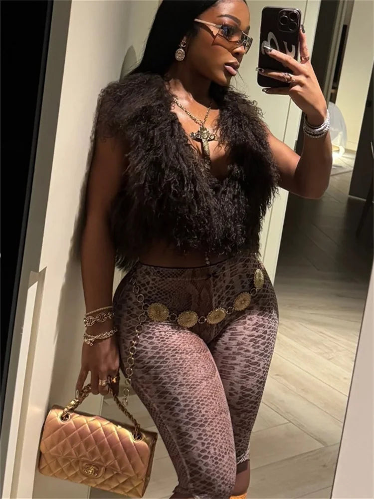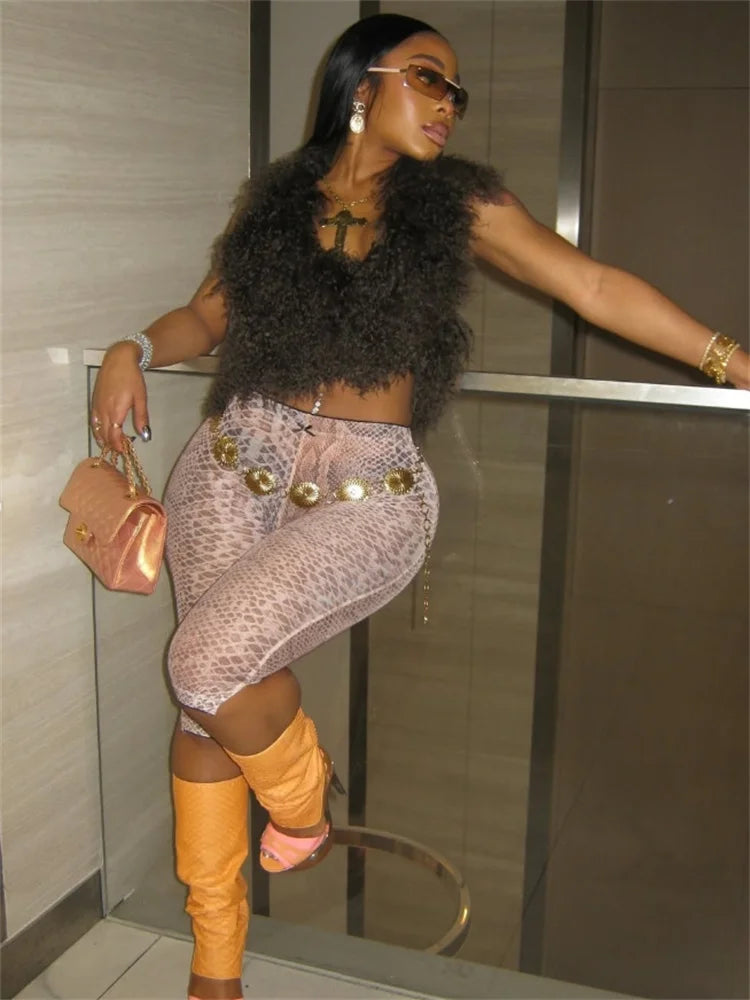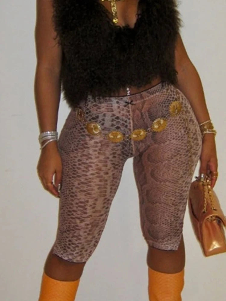 Serpentine Print Shorts Women Street Sexy Wild Style Elastic Waist Skinny Peach Hip Hottie Midnight Club Party Bottom