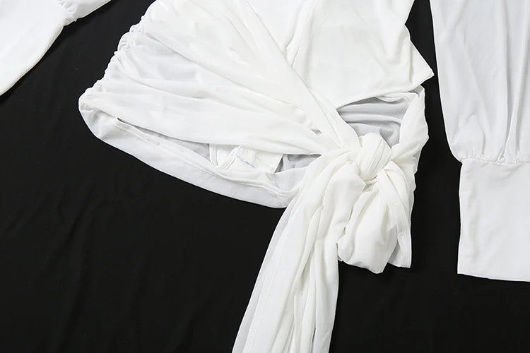 Sexy Backless Dress Women Polo-Neck See Through Full Sleeve Ruched Kink Ribbon Midnight Club Party Solid Mini Bodycon