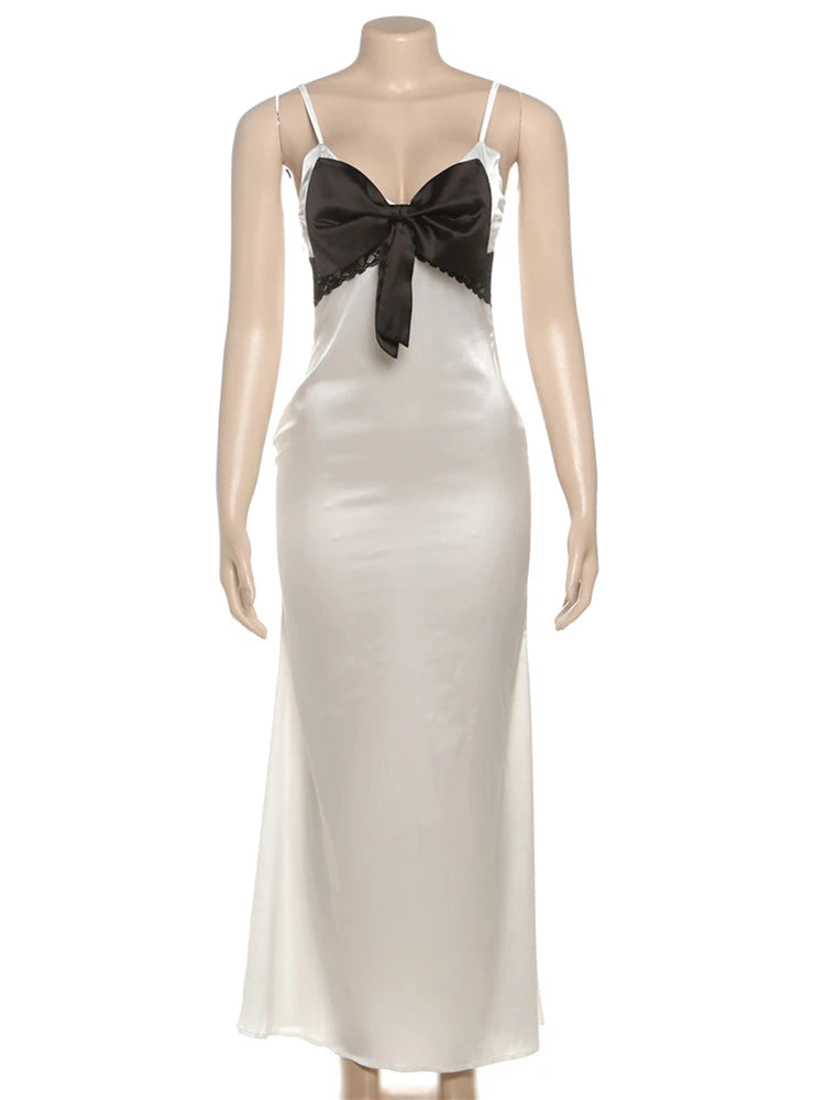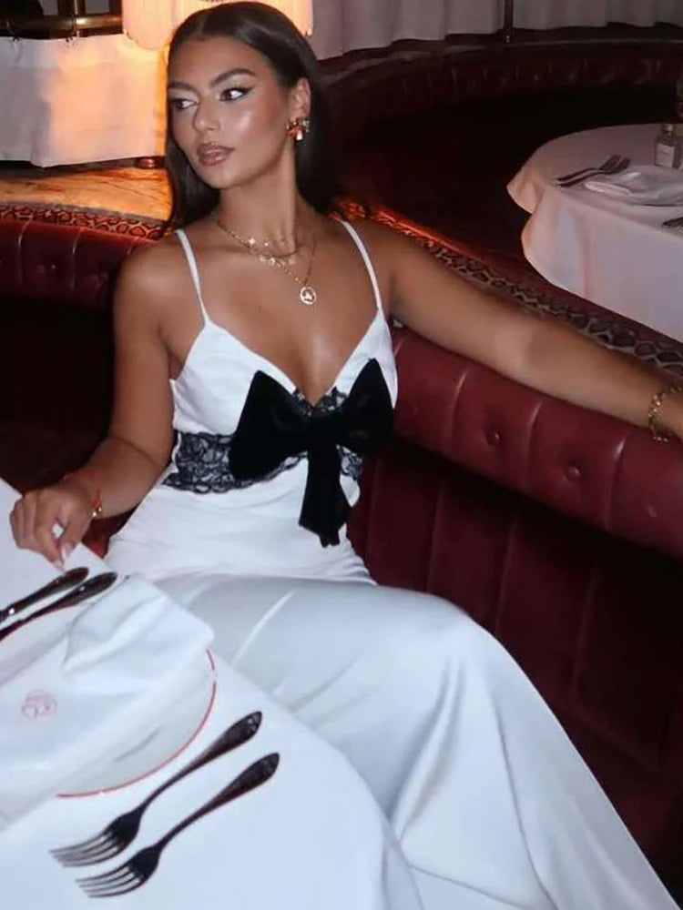 Sexy Bow Jacquard Dress Women Simple Sleeveless V-Neck Midnight Banquet Party Vacation Hipster Stretch Long Bodycon
