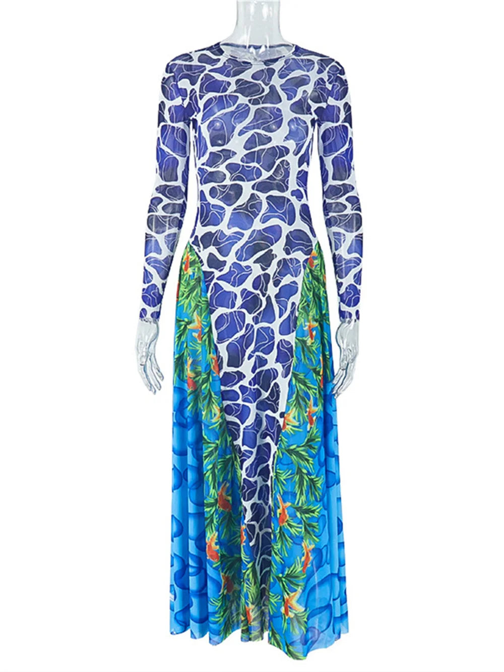 Sexy Colorful Dress Women See Through Long Sleeve Sexy Stretch Summer Birthday Party Midnight Club Vacation Vestidos