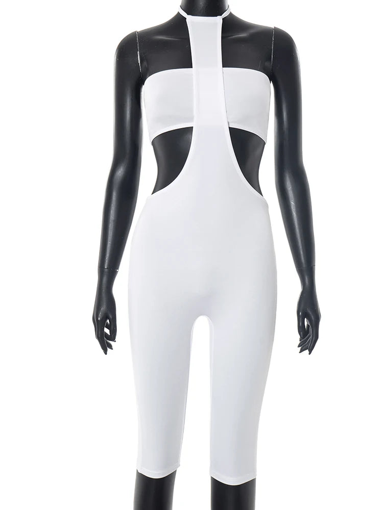 Sexy Fashion 2 Piece Set Women Solid Strapless Tops+Lace-Up Halter Backless Skinny Peach Hip Playsuit Hipster Outfits