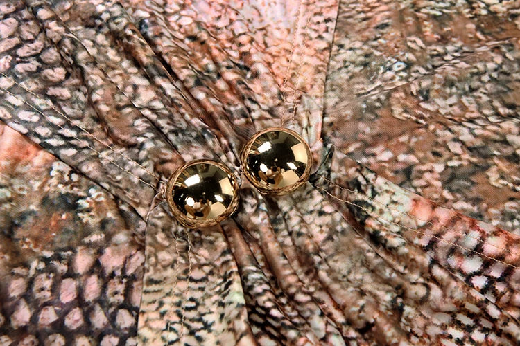 Sexy Halter Dress Women Snake Print Backless Metal Buckle Ruched Coquette Midnight Party Club Stretch Trend Bodycon
