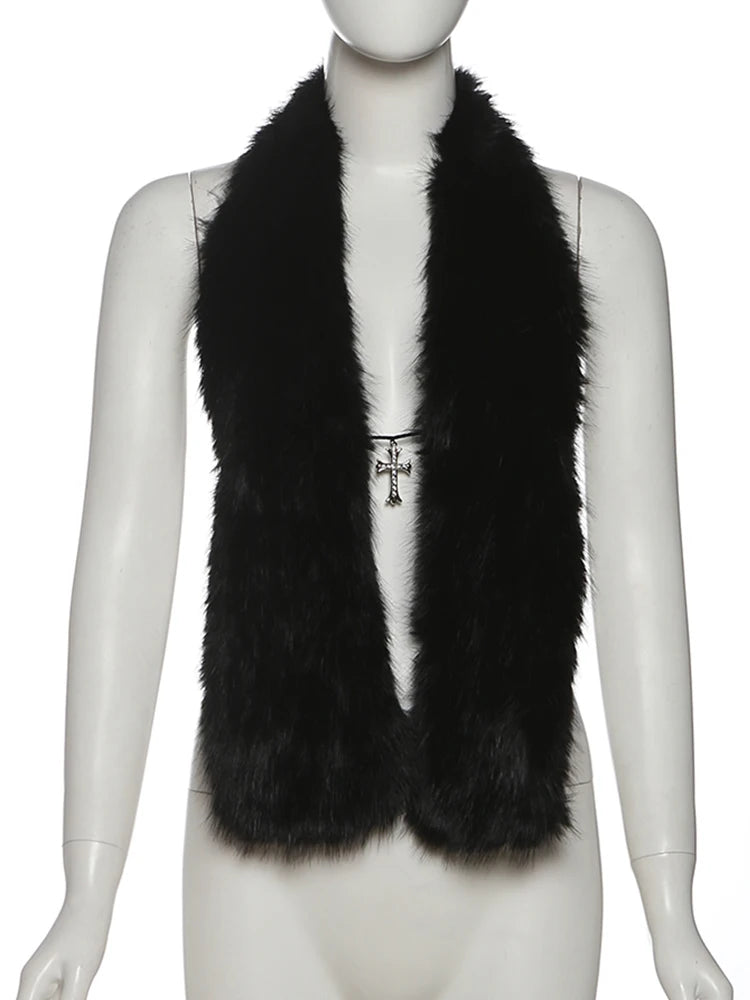 Sexy Halter Furry Tank Tops Women Backless Lace-Up Solid Hottie Wild Simple Street Midnight Clubwear Midnight Vest