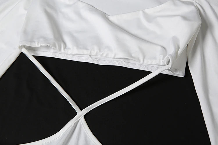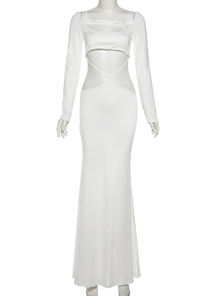 Sexy Hollow Waistless Dress Women Autumn Trend Square Collar Full Sleeve Skinny Stretch Elegant Style Long Bodycon