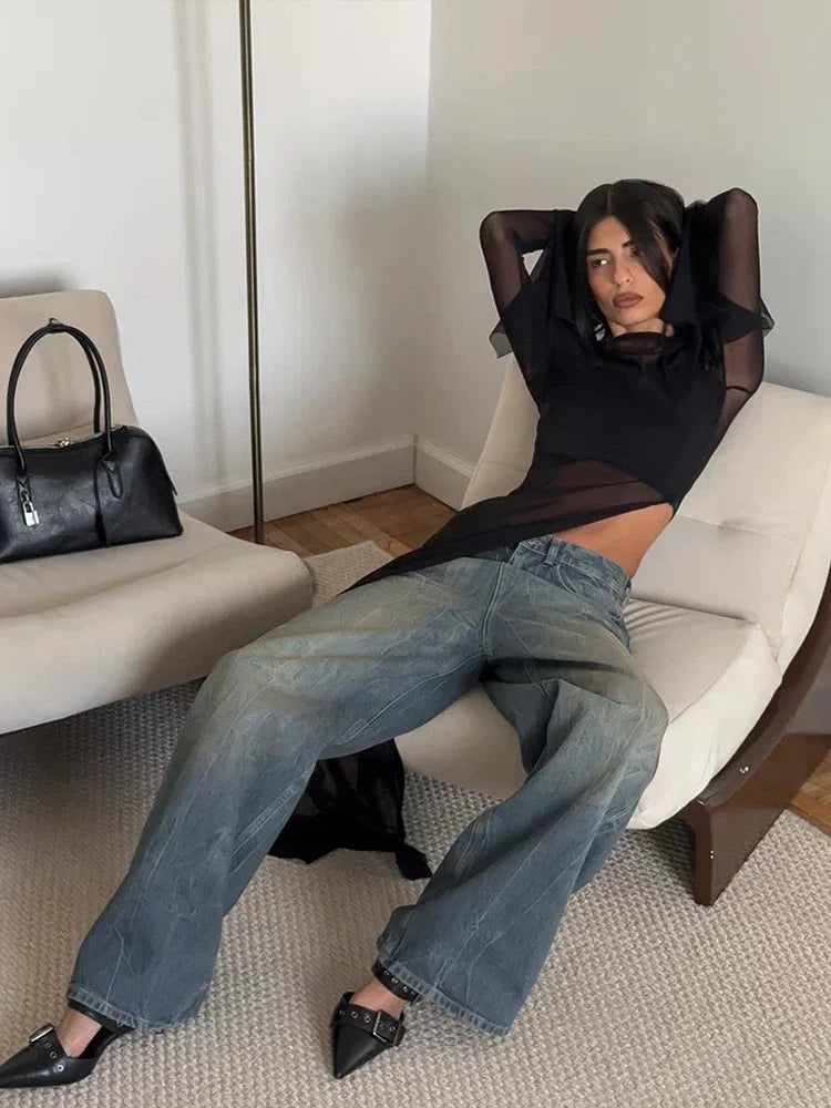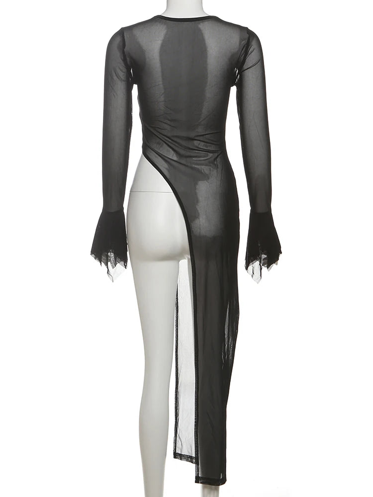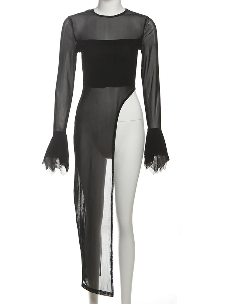 Sexy Irregular Hem T-Shirt Women Patchwork o-Neck Flared Sleeves Summer Midnight Sexy Hottie Fashion Split Long Tops