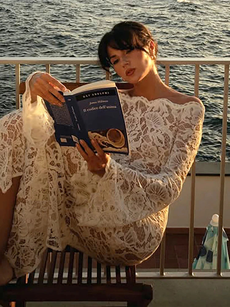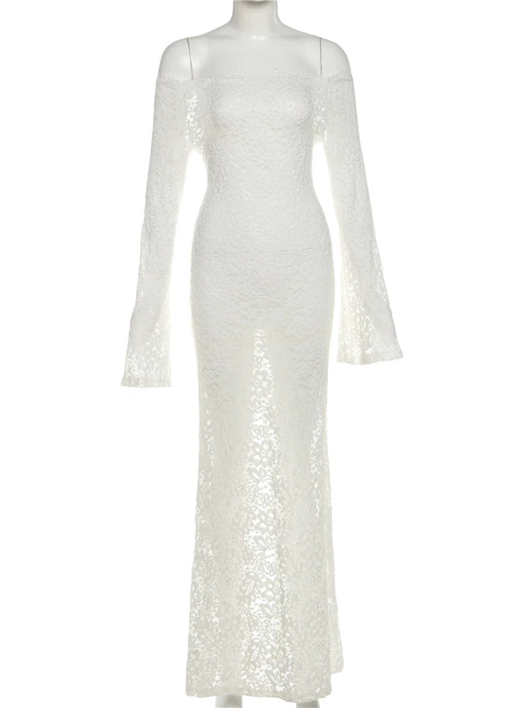 Sexy Jacquard Mesh Dress Women Wave Slash Neck Flare Sleeve Lace Elegant Evening Birthday Prom Party Skinny Bodycon