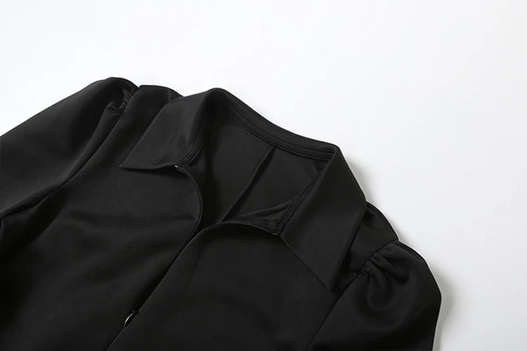 Sexy Maxi Dress Women Shoulder Padded Zip Wrapped Bandage Long Sleeve Slit Elegant Solid Office Simple Skinny Bodycon