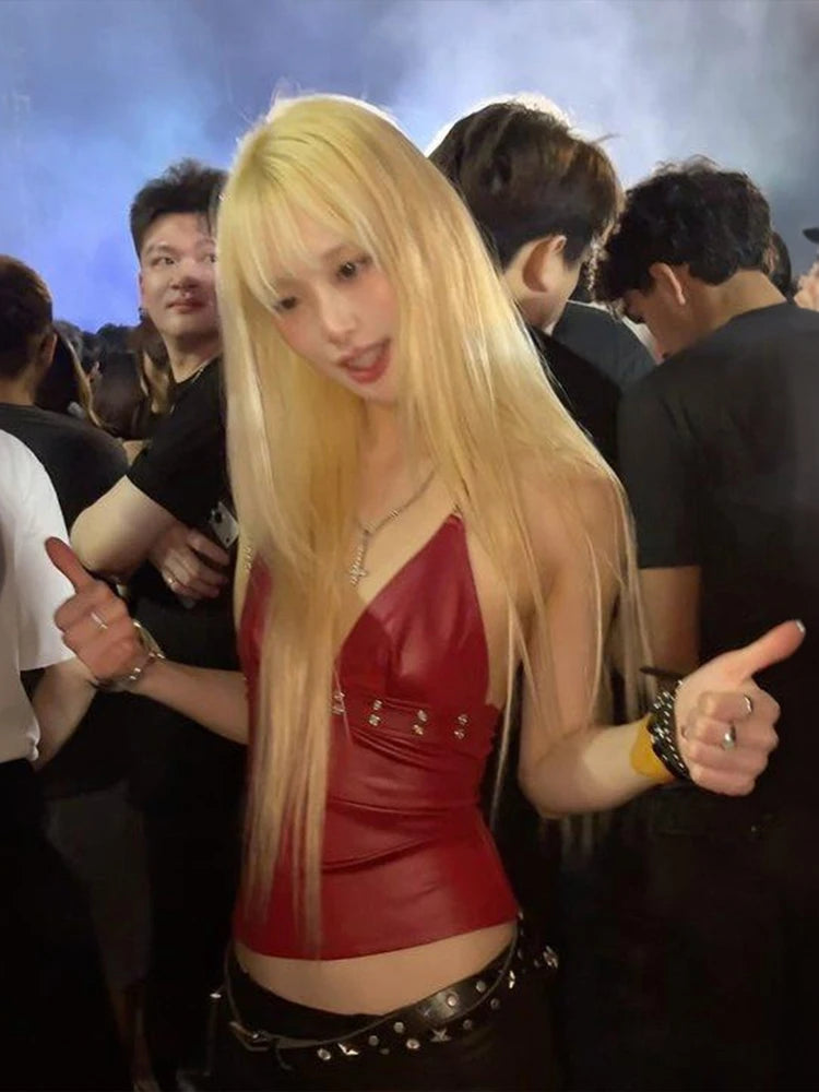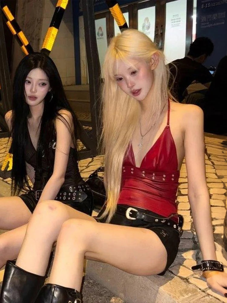 Sexy Metal Decoration Camisole Women v-Neck Faux Leather Midnight Hottie Music Festival Wild Fashion Classic Streetwear