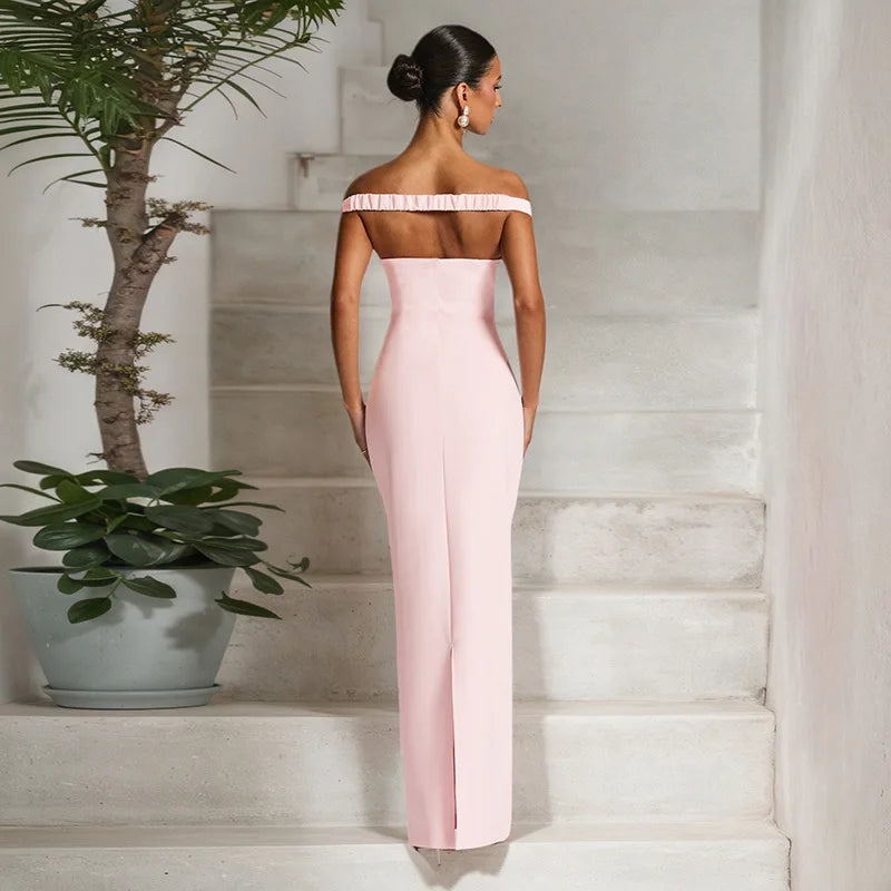 Sexy Off Shoulder Backless Long Maxi Dresses Wedding Guest Party Pink Dress Woman Elegant Evening Gown