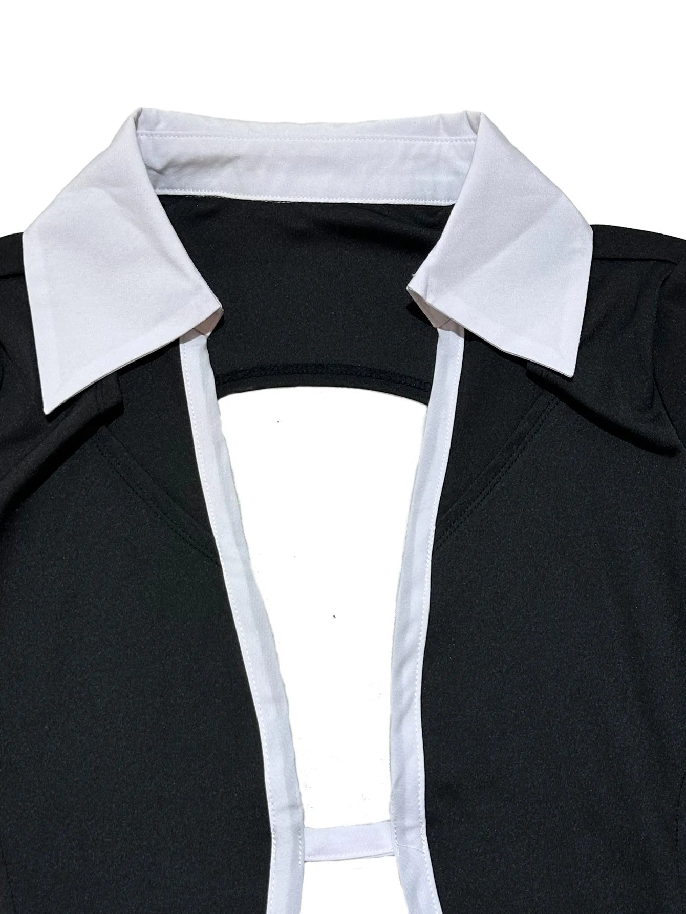 Sexy Polo Neck Playsuit Women Leopard Backless Bandage Full Sleeve Skinny Contrast Color Midnight Street Club Rompers