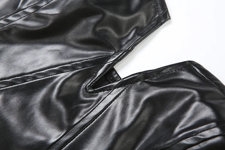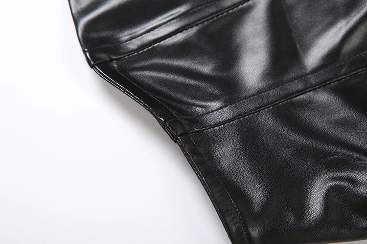 Sexy Punk Pu 2-Piece Set Women Irregular Corset Top+Skinny Zip Shorts Matching Simple Hottie High Street Hipster Clubwear