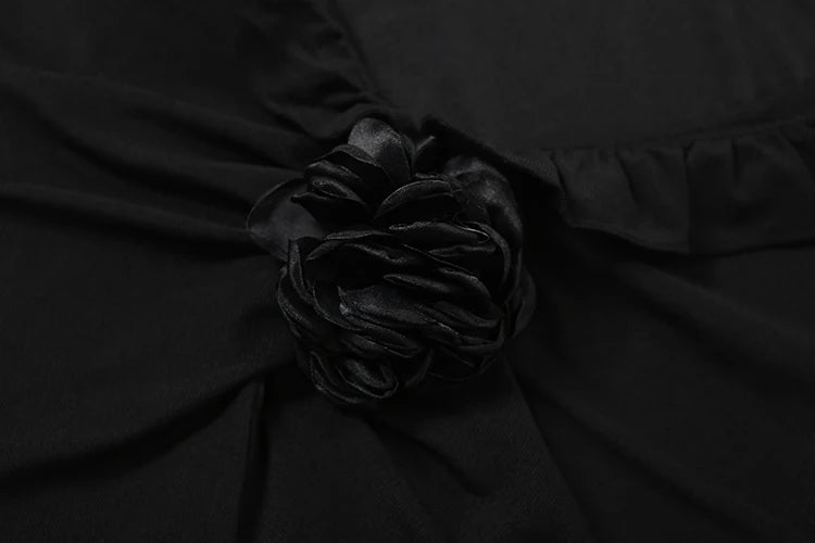 Sexy Ruched 2-Piece Set Women 3d Flowers v-Neck Slit Tank Tops+Tassels Skirts Midnight Hottie Hipster Summer Outfits