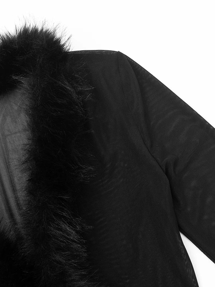 Sexy See Through Cardigan Tops Women Fluff Patchwork Skinny Full Sleeve Navel Exposed Hottie Wild Style Streetwear
