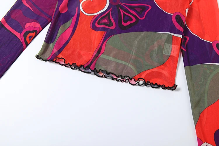 Sexy Sporty 2-Piece Set Women Tracksuit Sporty Fall Crop Tops+Leggings Matching Tight Stretch Colorful Print Streetwear
