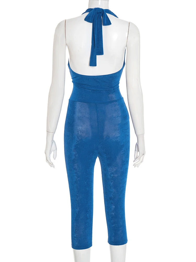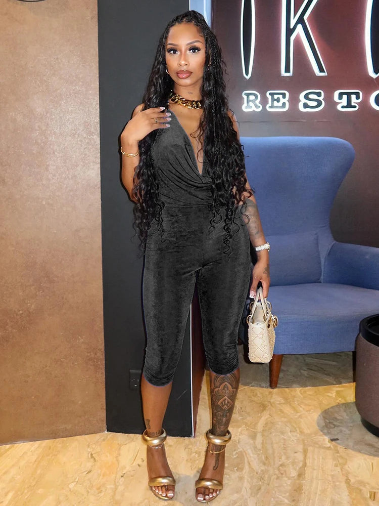 Sexy Swing Collar Playsuits Women Velvet Bandage Halter Backless Backless Tight Streetwear Stretch Workout Romper