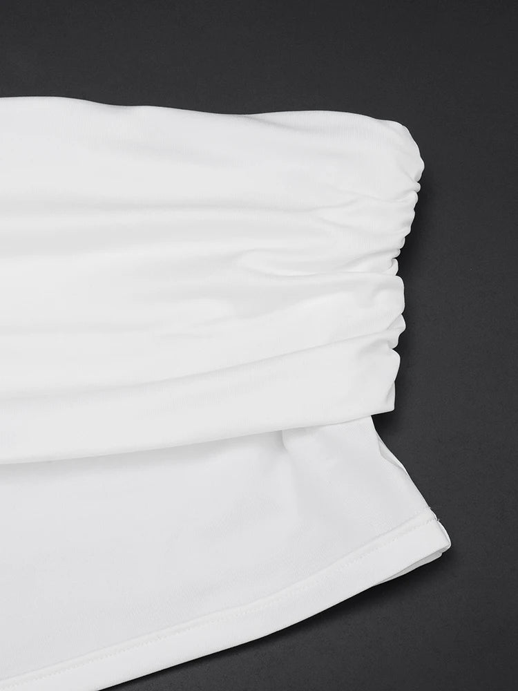 Sexy Tracksuits 2-Piece Set Women Skew Collar Chest Wrapped Crop Top+Skinny Shorts Basic Stretch Matching Outfits