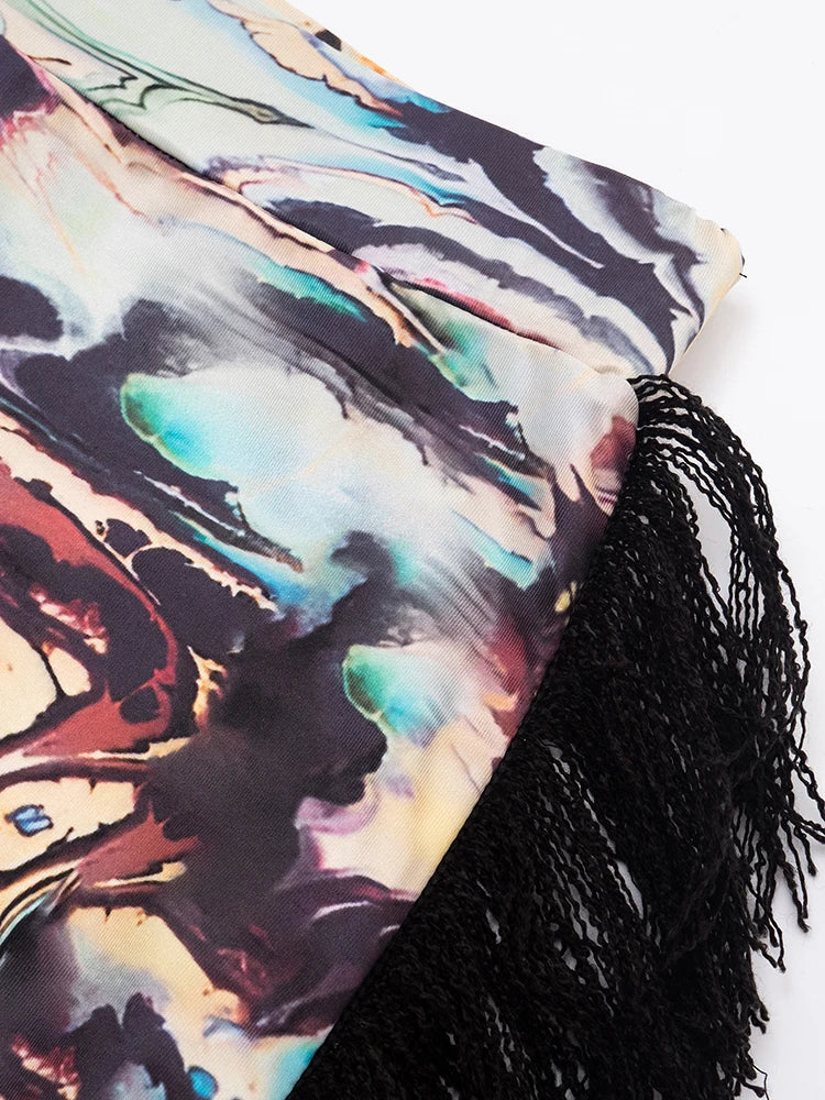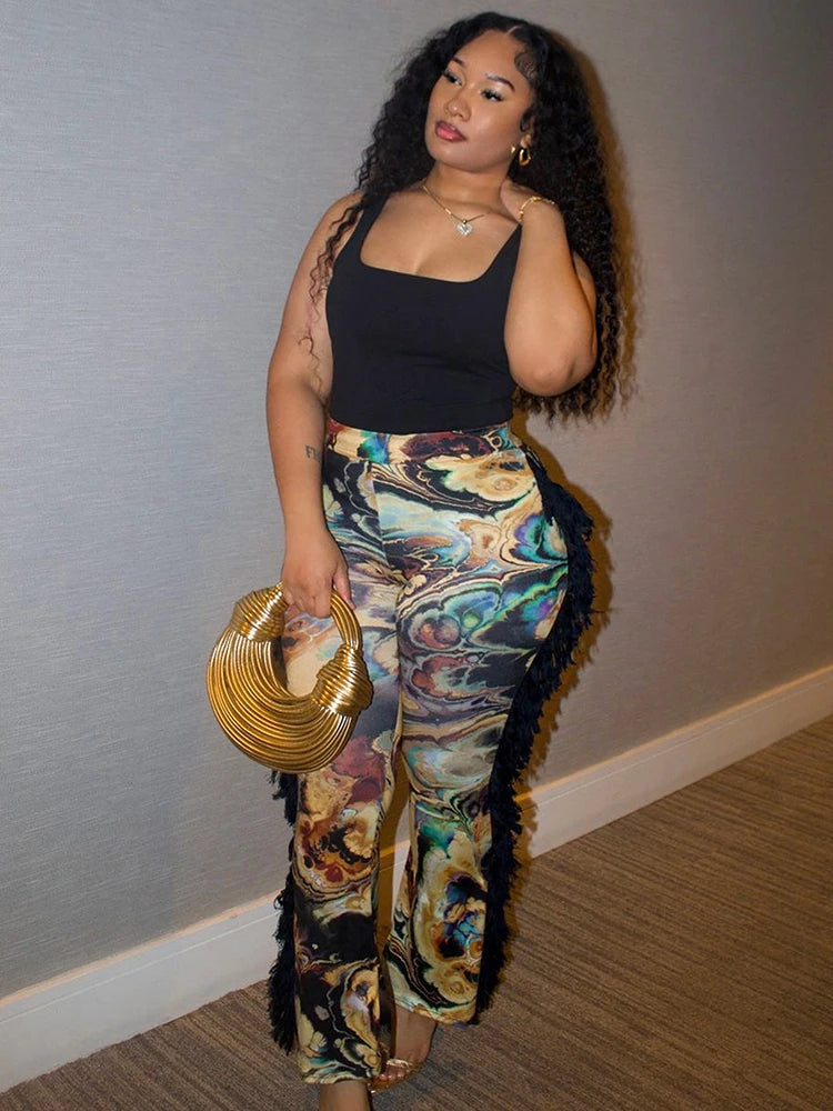Side Tassel Flare Pants Women Patchwork Autumn Trend Colorful Print Sexy Wild Slim Street Skinny Clubwear Trousers