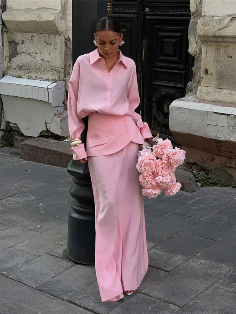 Single-Breasted 3 Piece Set Women Elegant Polo Neck Full Sleeve Blouse+Pinafore+Skirt Matching Trend Chic Streetwear