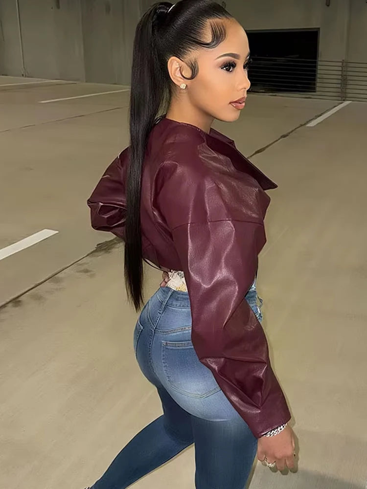 Single Button Crop Jacket Women Hipster Irregular Faux Leather Fall Trend Wild Basic Sexy Cross Neck Streetwear Coat