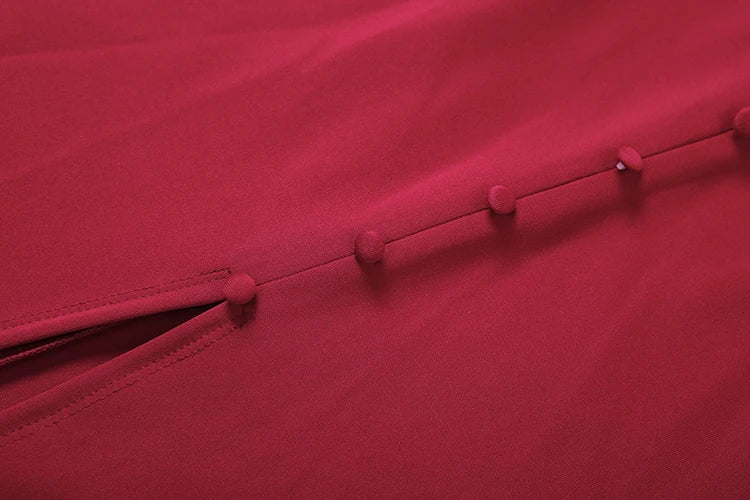 Single-Button Maxi Dress Women Front Split Full Sleeve v-Neck Elegant Classic Office Streetwear Fashion Slim Vestidos