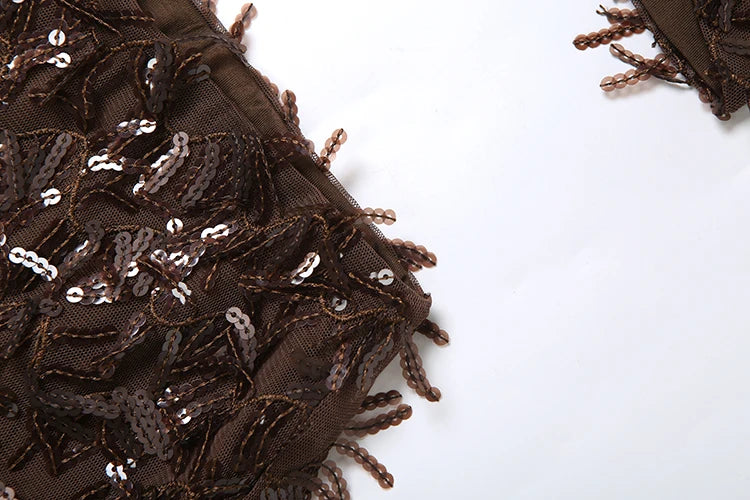 Slim Sequin Tassels 2 Piece Set Women Sexy Swing Collar Tank Tops+Peach Hip Skits Midnight Summer Birthday Party Clubwear