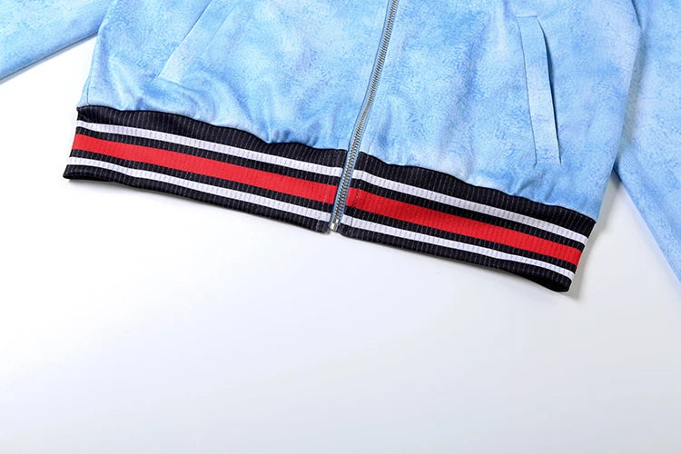 Sporty Tie-Dye Print Women Tracksuit 2 Piece Set Print Zip Crop Jacket+Straight Pants Matching Streetwear Casual Suit