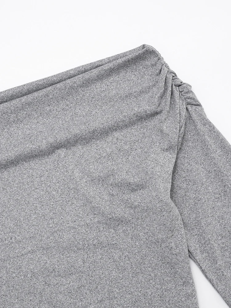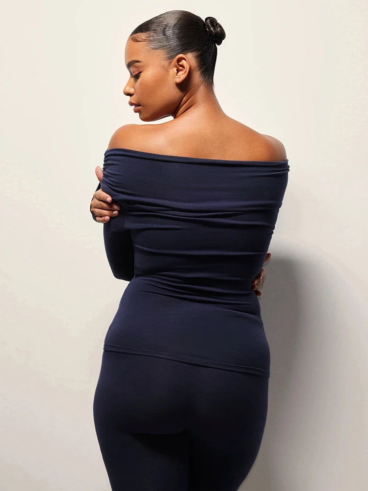 Sporty Tracksuits 2-Piece Set Women Slash Neck Crop Top+Ruched Pants Matching Simple Stretch Skinny Casual Outfits