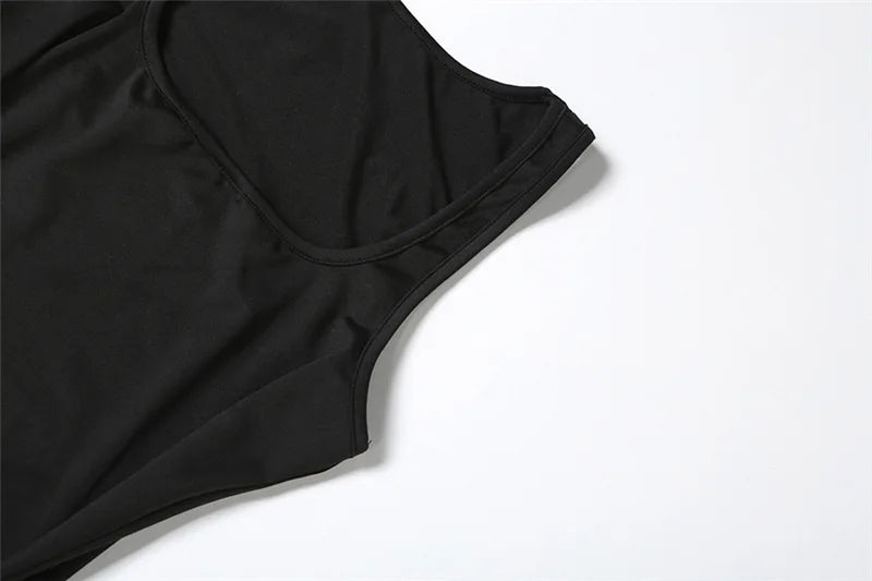 Square Neck Low Cut Sleeveless Long Dresses Business Casual Summer Black Dress Woman Elegant Clothing