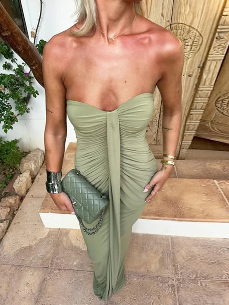 Strapless Dress Women Classic Patchwork Ribbon Ruched Sexy Elegant Birthday Party Skinny Stretch Clubwear Bodycon