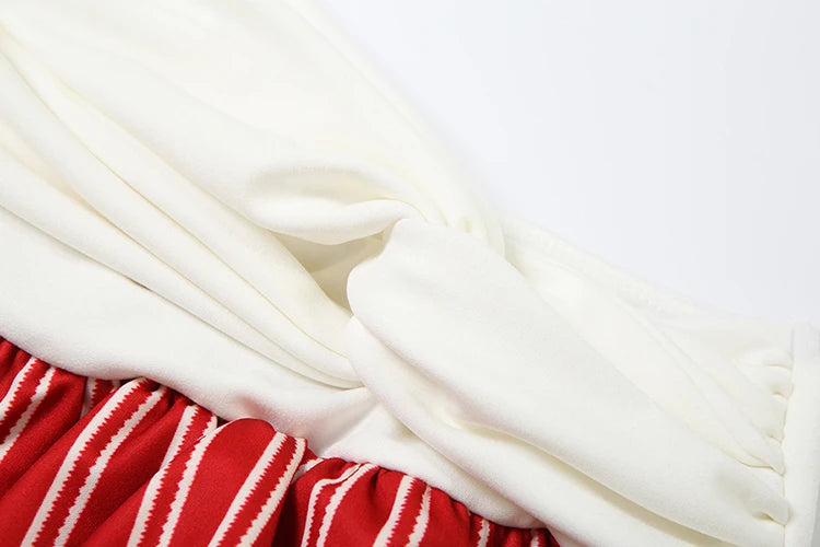Stripe Print 2-Piece Set Women Halter Bandage Backless Crop Top+Patchwork Lace Tierred Skirt Beach Vacation Outfits