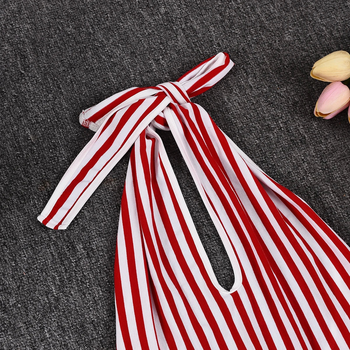 Stripe Print Playsuit Women Sleeveless Backless Halter Bandage Skinny Sexy Clubwear Activity Fitness Workout Romper