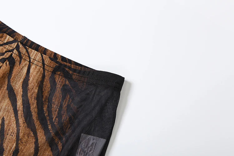 Stripe Print Women 2 Piece Set coquette See Through Hipster Full Sleeve Crop Tops+Straight Pants Matching Clubwear