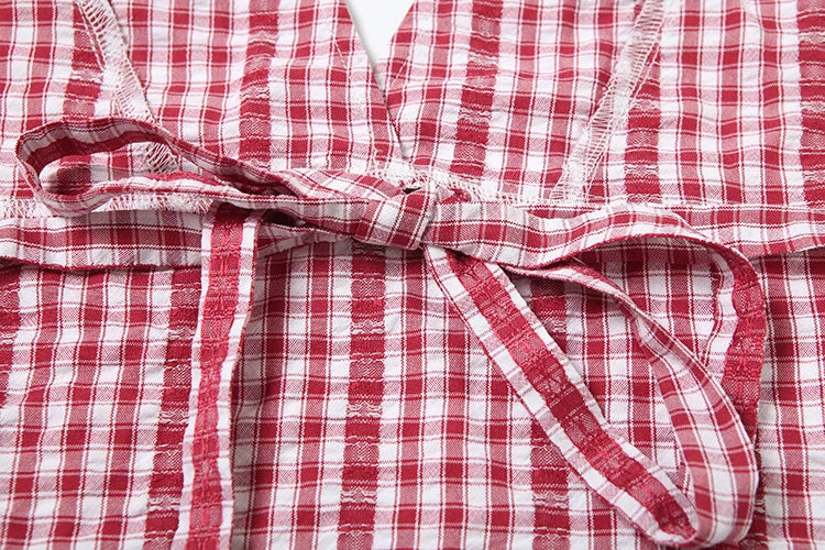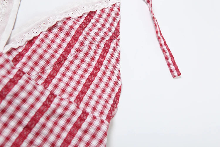 Striped Print 2-Piece Set Women Bandage Halter v-Neck Patchwork Lace Backless Vests+Folds Puffy Hem Shorts Sweet Suits