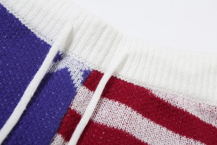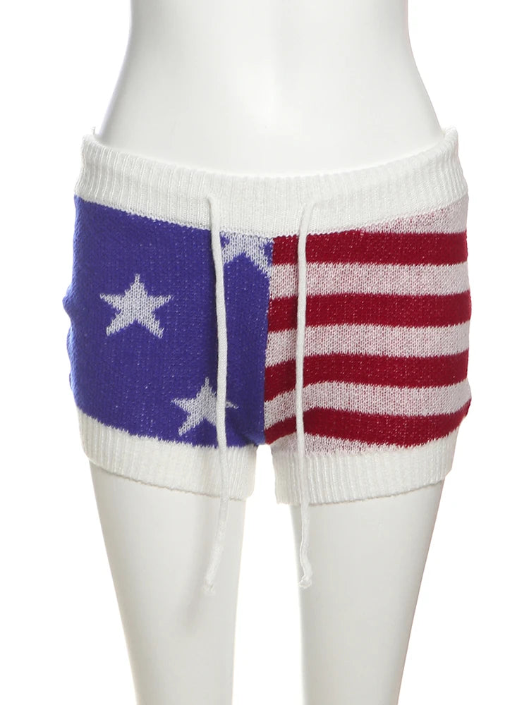 Summer Sweet 2-Piece Set Women Solid Backless Sleeveless Elegant Tops+ Pentagram Stripes Knit Shorts Matching Suits