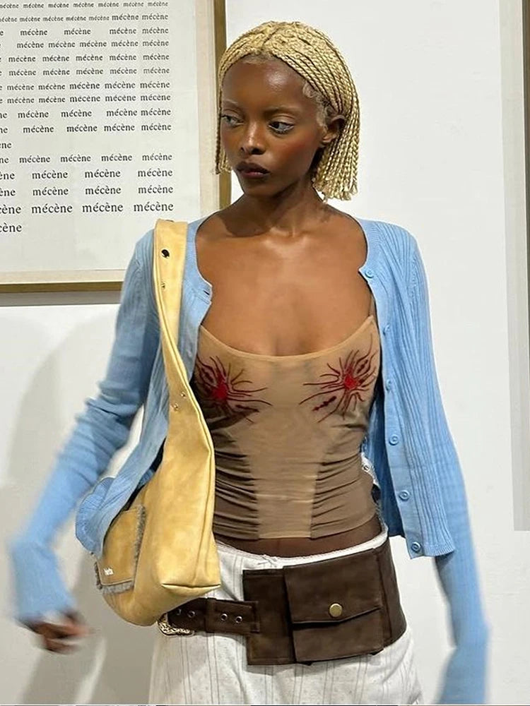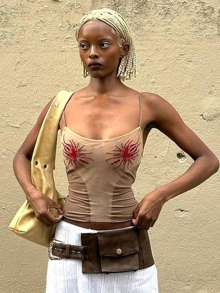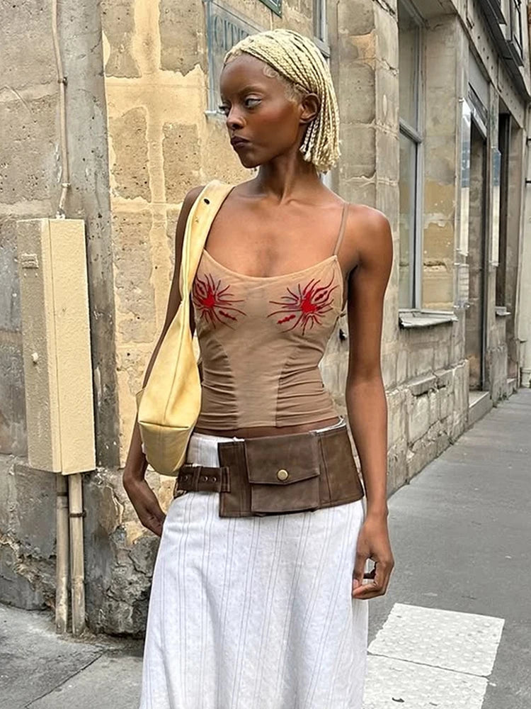 Sun Print Sexy Women Camisole Y2K Summer Fashion Low-Neck Coquette Midnight Party Club Wild Basic Street Slim Tees