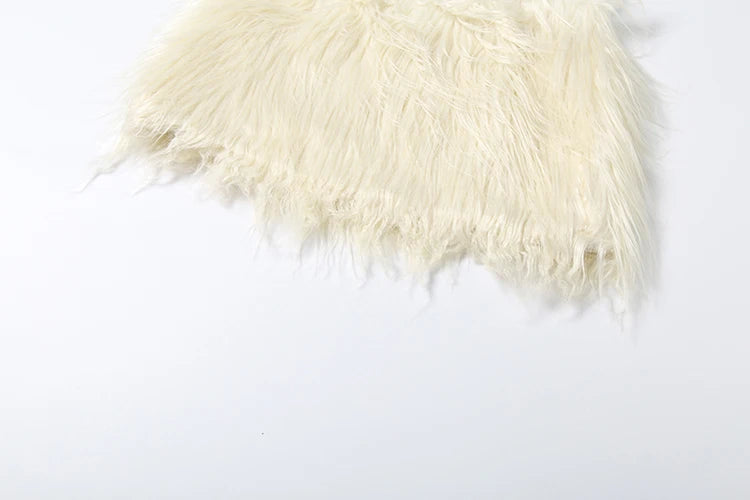 Sweet Elegant 2-Piece Set Women Elastic Y2K Patchwork Tube Tops+Fur Peach Hip Skirts Matching Midnight Party Clubwear