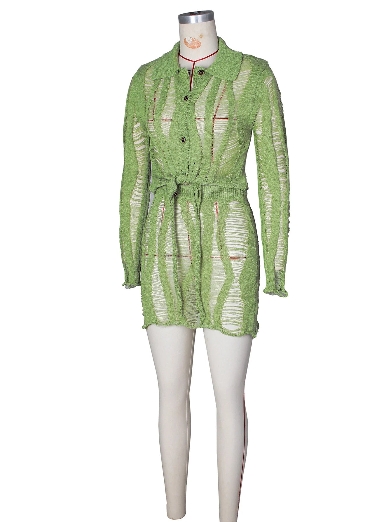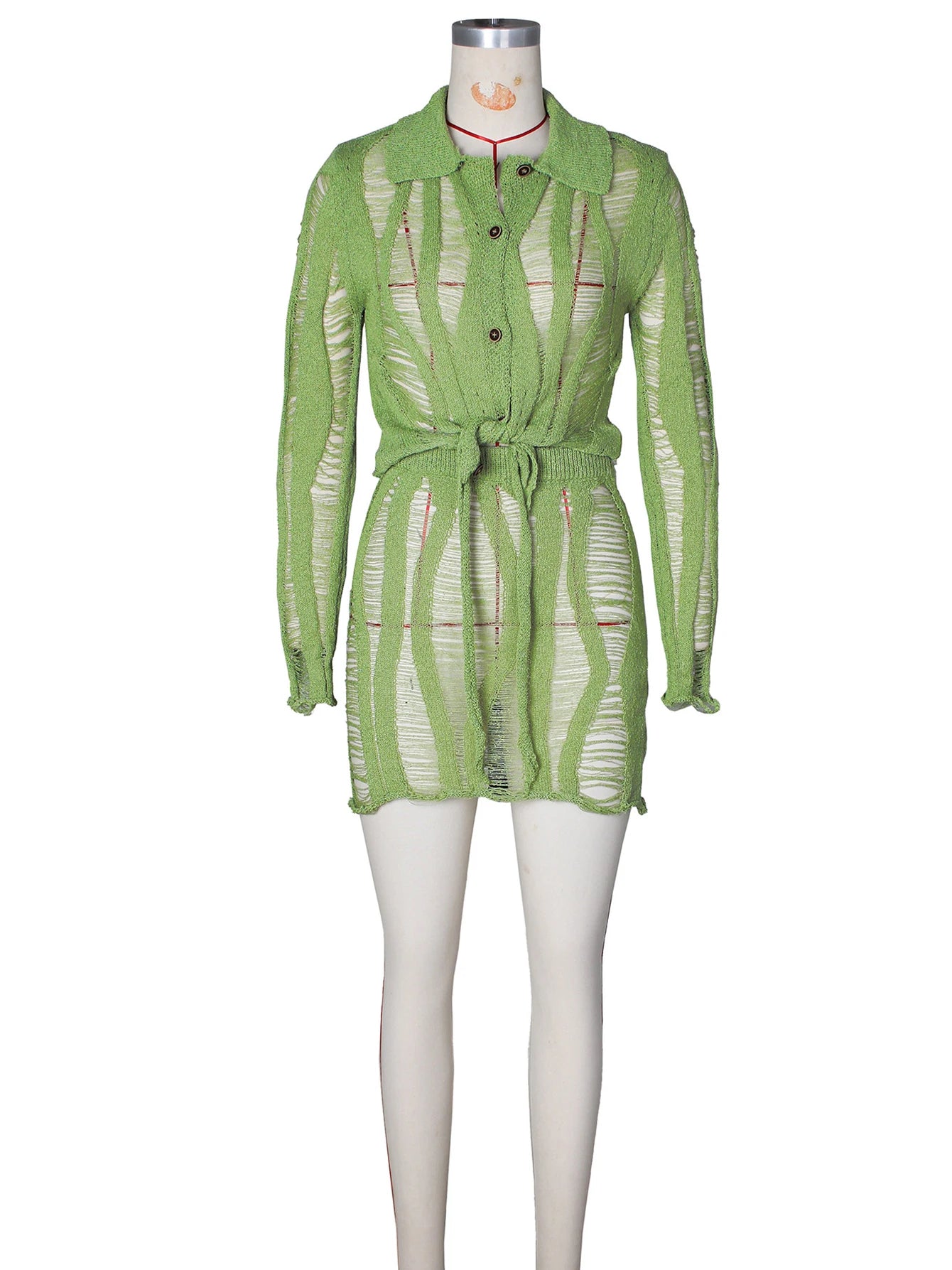 Thin Knit Women 2 Piece Set Sexy Coquette Full Sleeve Single-Breasted Blouse+Mini Skirts Clubwear Midnight Party Suit