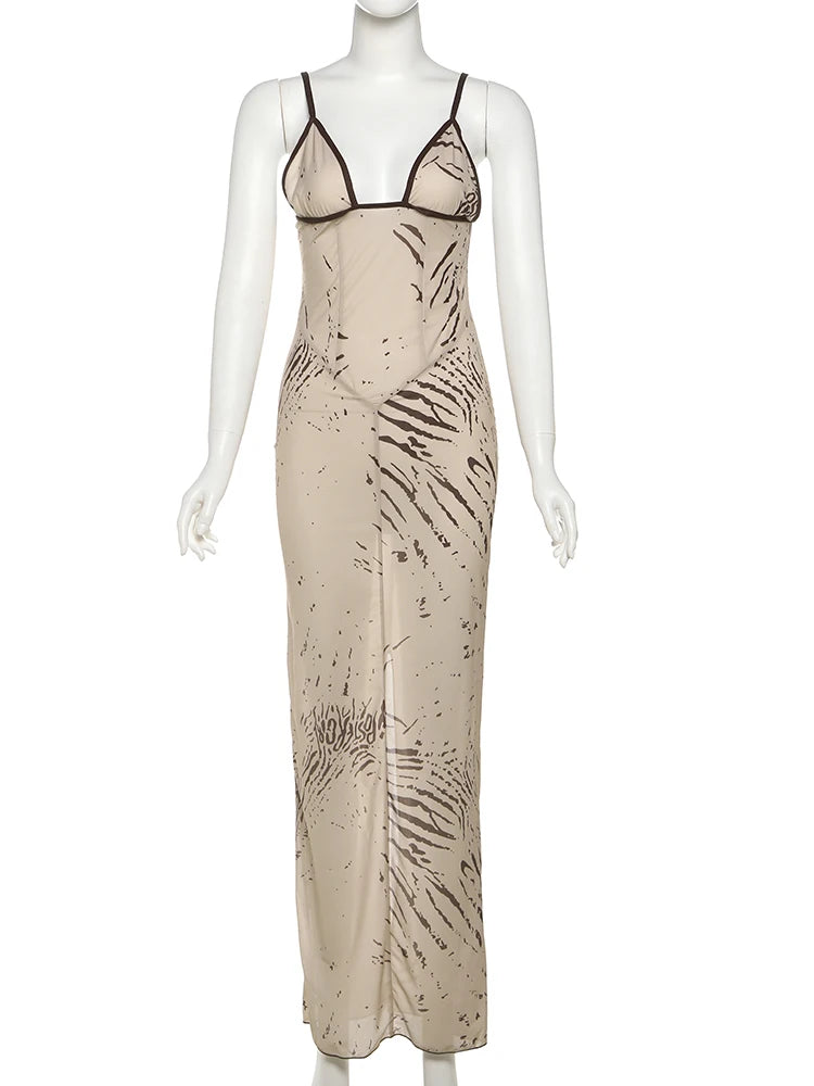 Tie-dye Print Dress Women Sexy Low-Neck Skinny Sleeveless Backless Skinny Vacation Beach Club Party Classic Vestidos