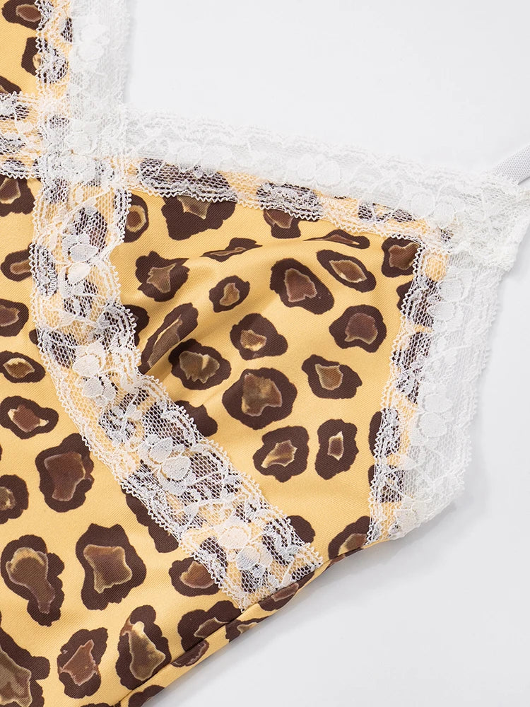 Tracksuit Women 2 Piece Set Casual Leopard Print Y2K Camisole+Mid Pants Tight Stretch Skinny Matching Street Outfits