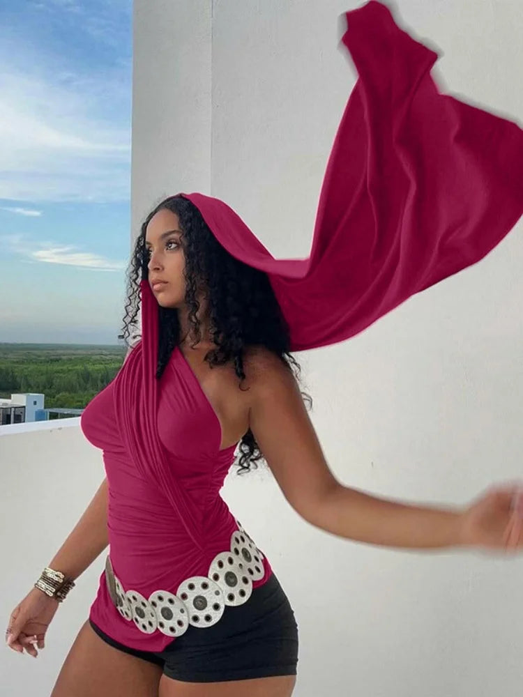 Trendy Asymmetrical Tops for Woman Streetwear Clothing Twisted One Shoulder Ruched Tank Tops White